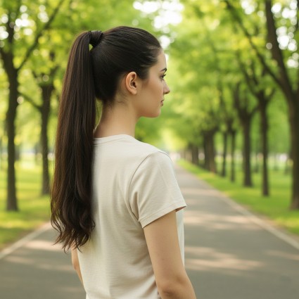 Bağlamalı Düz At Kuyruğu - Koyu Kahve