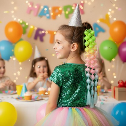 Balon Örgülü Simli Lastikli At Kuyruğu - ACM27