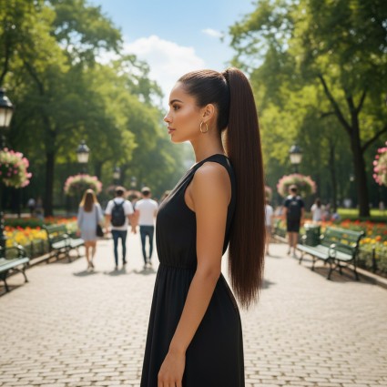 Lastik Tokalı At Kuyruğu Düz - Kahverengi / Kumral Ombre Beyaz Platin RöfleFiber sentetiktir.70-75 cm uzunluğunda, 150-160 Gr. civarındadır.Gerçek görünüme yakındır parlama yapmaz.Lastiği sayesinde saça pratik bir yöntemle takılır..Ilık fön ve maşa uygulayabilirsiniz.130 - 140 dereceyi geçmemesi koşuluyla düzleştirebilirsiniz.Saçın karışma do..