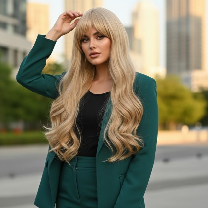Fiber Sentetik Uzun Düz Kahküllü Peruk - Siyah / Balköpüğü Ombreli