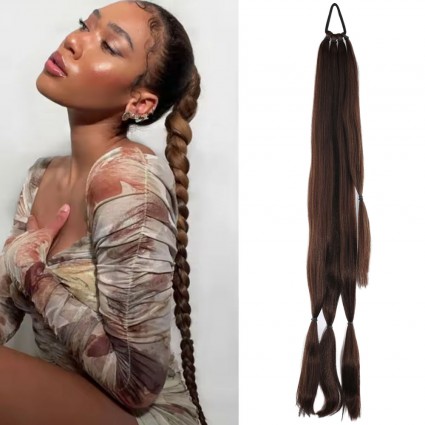 Lastik Tokalı At Kuyruğu Kabarık Afro Dalgalı - Küllü Kumral / Beyaz Platin Ombre