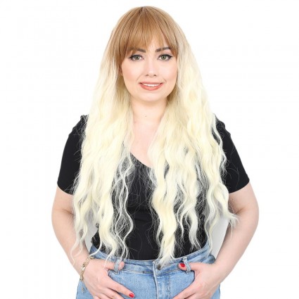 Kısa Küt Perçemli Fiber Sentetik Peruk - Sarı