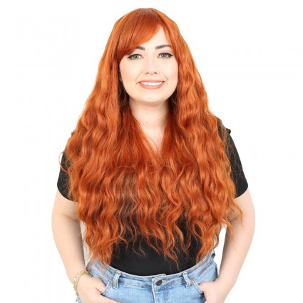 Küt Kahküllü Fiber Sentetik Peruk - Gül Kurusu