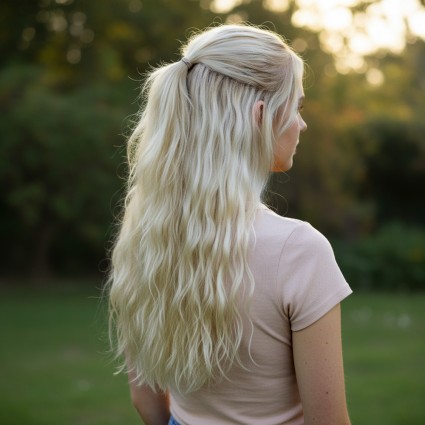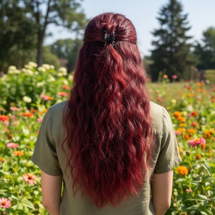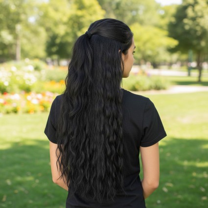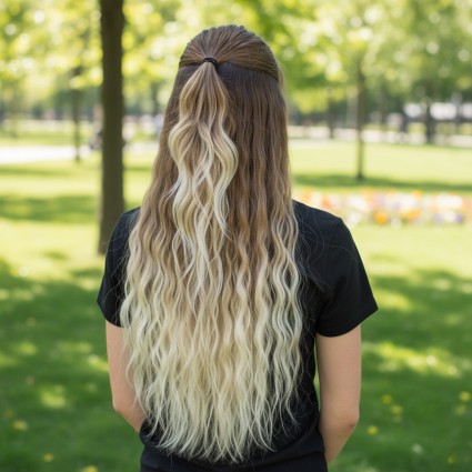 Fiber Sentetik Kabarık Dalgalı Yarım Ay + 2 Yan Çıt Çıt - Kumral